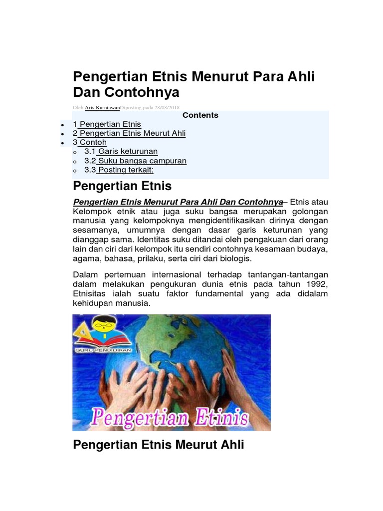 Pengertian Etnis Menurut Para Ahli Dan Contohnya